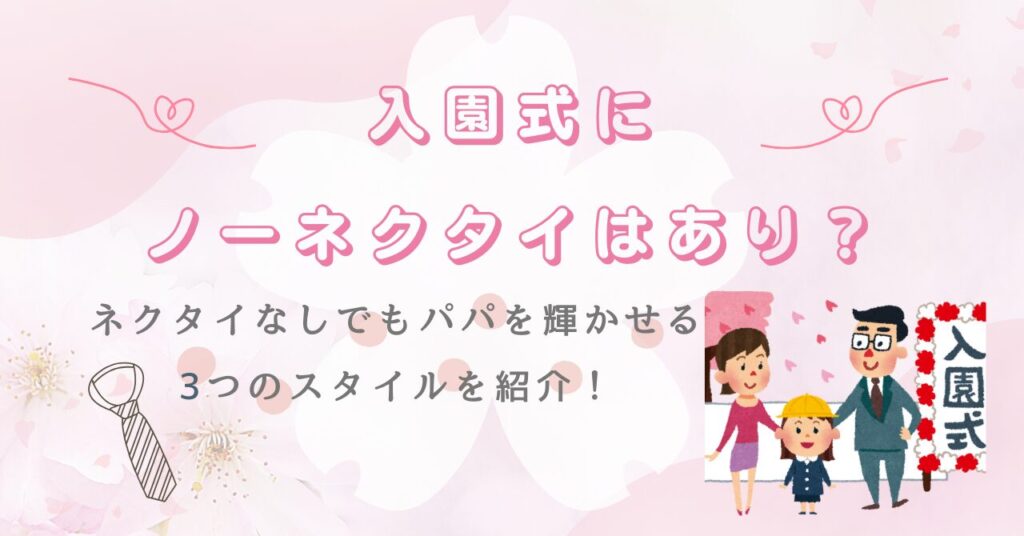 これから入園式。 服装について悩んでいるパパも多いのではないでしょうか。 特に、ノーネクタイで参列してもいいのか、という疑問を持っている人も多いと思います。 この記事では ノーネクタイで参列することはマナー違反なのか? ノーネクタイで参列する... -